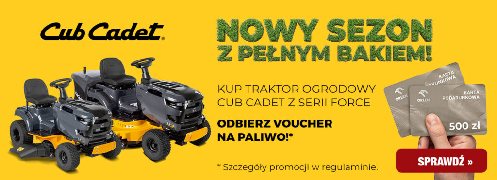 Marka Cub Cadet przygotowała wyjątkową promocję dla osób planujących zakup traktora ogrodowego. Przy zakupie wybranego traktora z serii LT i jego zarejestrowaniu, klient może otrzymać kartę paliwową Orlen.